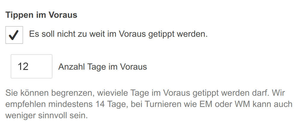 Nei giochi di pronostici in cui ci sono premi in palio, può essere una cosa sensata limitare i pronostici in anticipo. Altrimenti, potrebbero esserci giocatori che pronosticano tutto in una volta all'inizio e poi aspettano di vedere se hanno vinto qualcosa. Ciò significa che non sono parte attiva della comunità.
